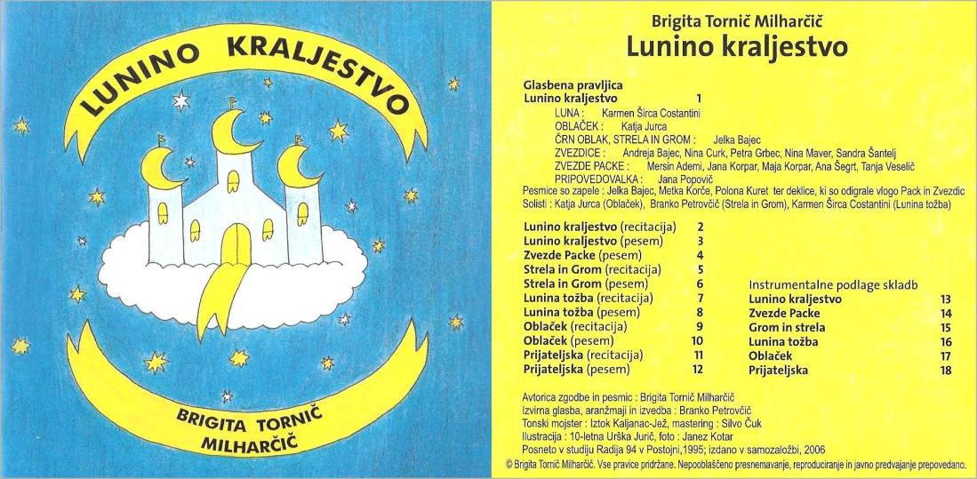 Glasbena pravljica LUNINO KRALJESTVO razveseljuje otroke že 30 let. Avtorica zgodbe in pesmic Brigita Tornič Milharčič je leta 1994 k sodelovanju povabila Branka Petrovčiča, učitelja harmonike na Glasbeni šoli Postojna, ki je pravljico glasbeno opremil. Ob dvajseti obletnici nastanka pravljice se je avtorica odločila za ponovno izdajo knjige. Tokrat je zgodbico ilustrirala Barbara Kogoj iz Postojne.